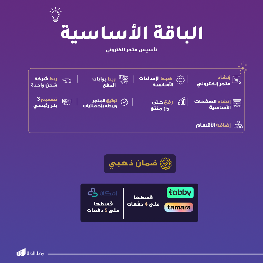 انطلاقتك الفعلية في عالم التجارة الإلكترونية تبدأ مع باقة ويل واي الأساسية!