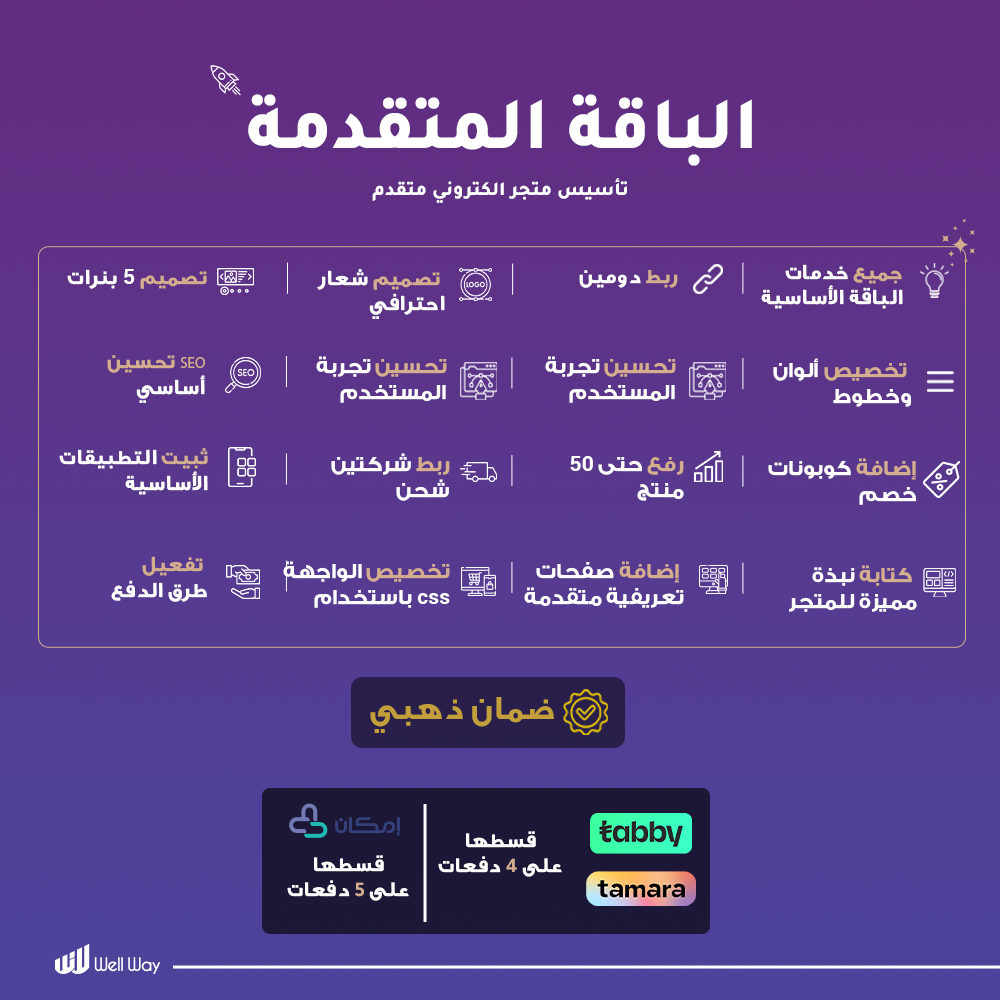 امتلك الآن متجر الكتروني متقدم مع الباقة المتقدمة من ويل واي، وابدأ البيع باحترافية
